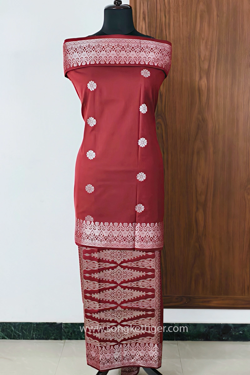 Songket Tenunan- Bunga Tabur – #01003 – Maroon x Silver