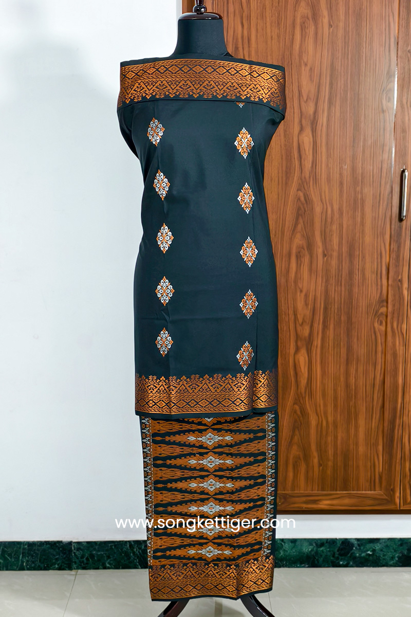 Songket Tenunan – Diamond Design 2″ Multicolor – #01016 – Black x Copper